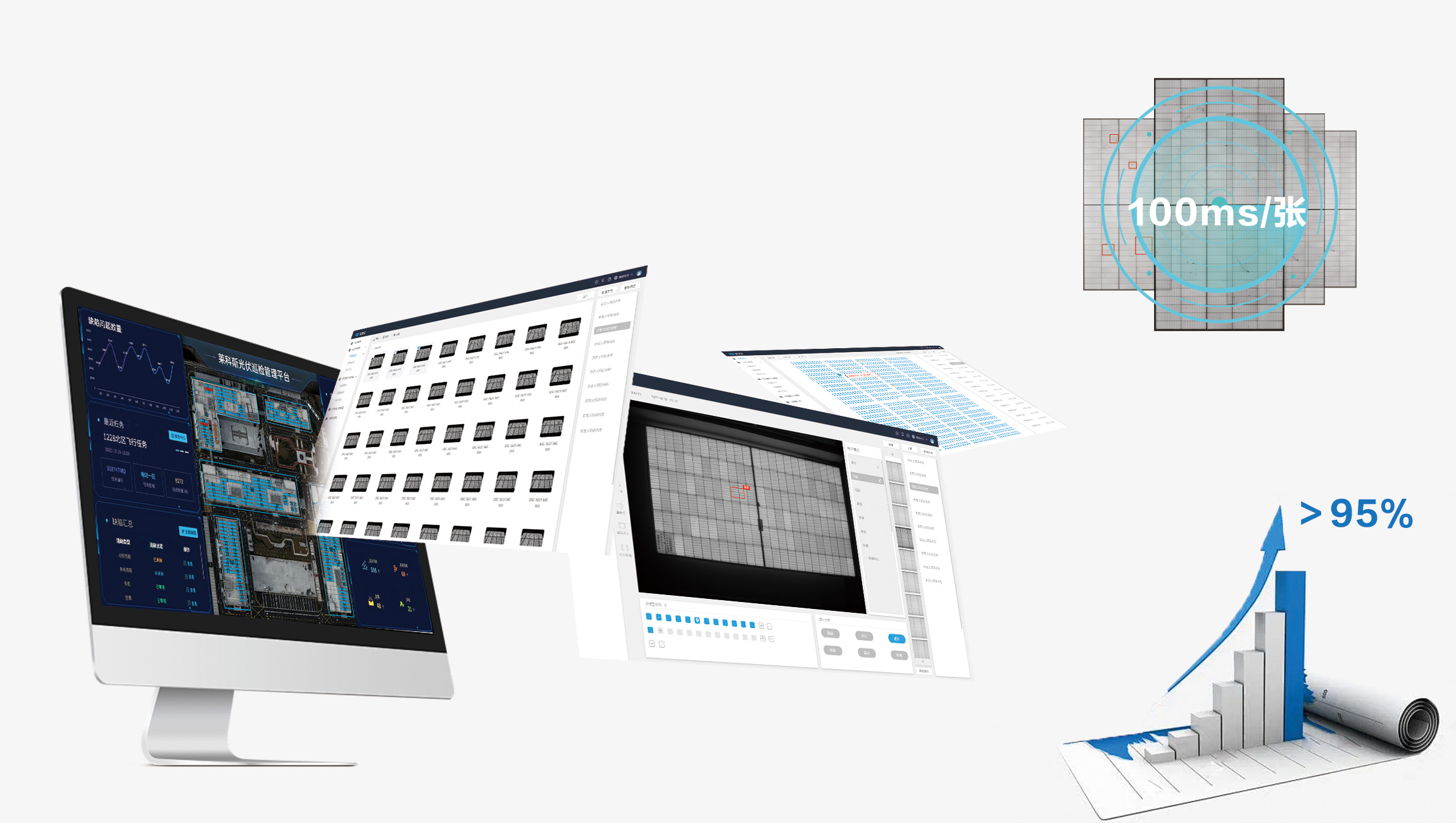 | APP軟件;安卓系統/IOS系統;可調節相機參數;組件條碼錄入;電站檢測建模;視頻預覽測試;Ai缺陷自動識別并標記;Ai正攝自動截圖EL圖像;自動生成Ai識別診斷報告(插圖);自動生成EL定位報告;lailx云存儲;lailx云識別批量跑圖 可進行不小于20萬張Ai批量隱裂識別診斷報告 |
